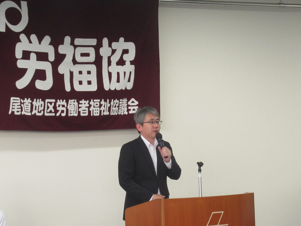 冒頭、地区労福協を代表して神尾会長が挨拶をおこなったのち、広島県労福協久光会長をはじめとする5名の来賓の方々を紹介し、それぞれの団体より事業説明等を頂きました。